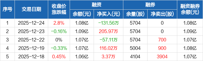 纵横股份:融资净偿还131.56万元,融资余额1.08亿元(12-24)