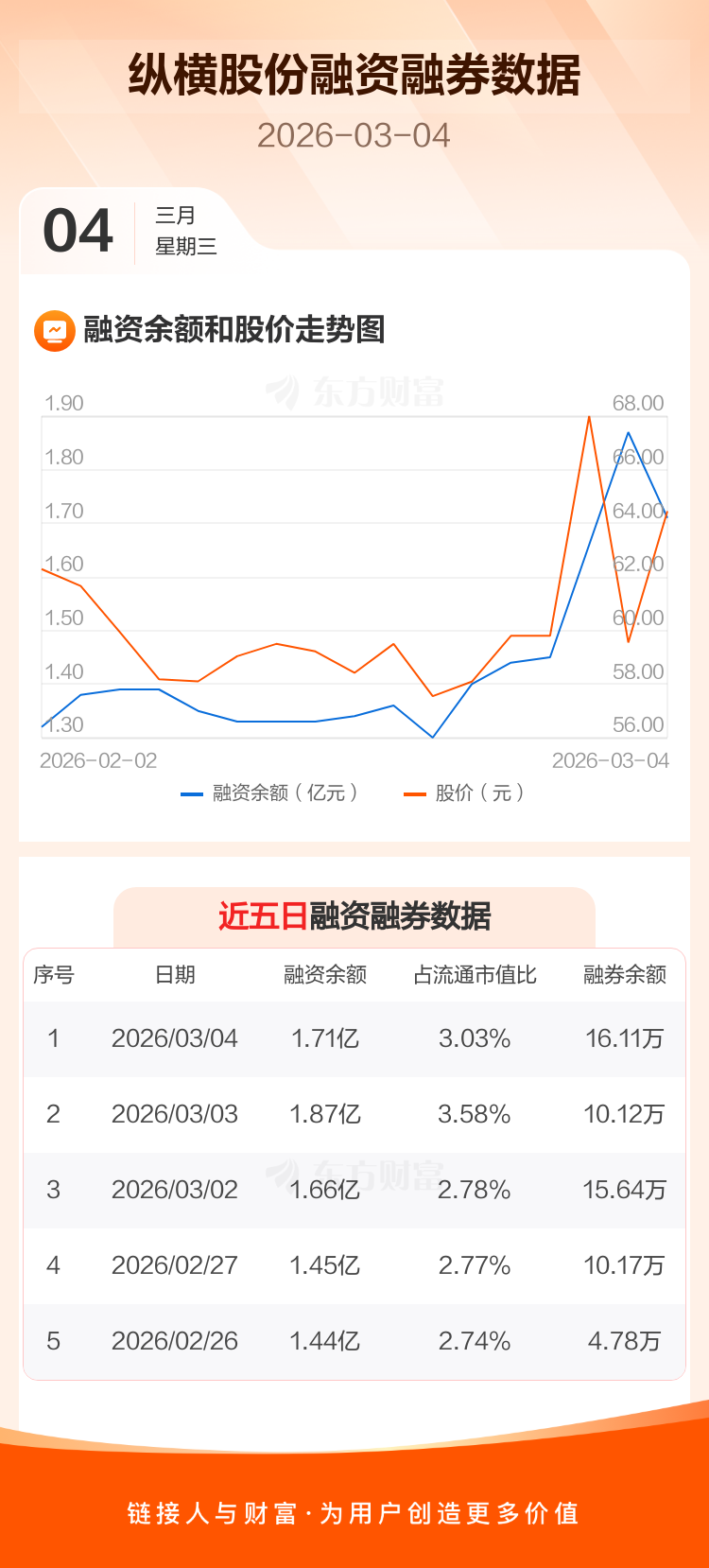 交易所最新数据显示,纵横股份于2026年3月4日获融资买入3995.03万元,融资偿还5568.07万元,当日融资净偿还1573.04万元。目前,该股融资余额1.71亿,占流通市值比例为3.03%。