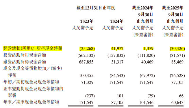 此外,公司现金流承压。2023年经营活动现金净流出2527万元,2025年前九个月再次净流出3043万元。