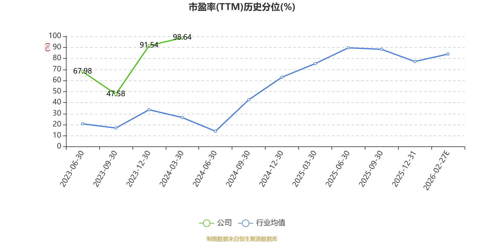 市盈率、市净率为负时,不显示当期分位数,会导致折线图中断。