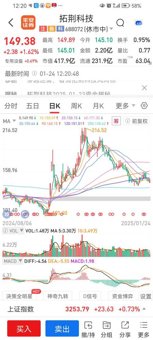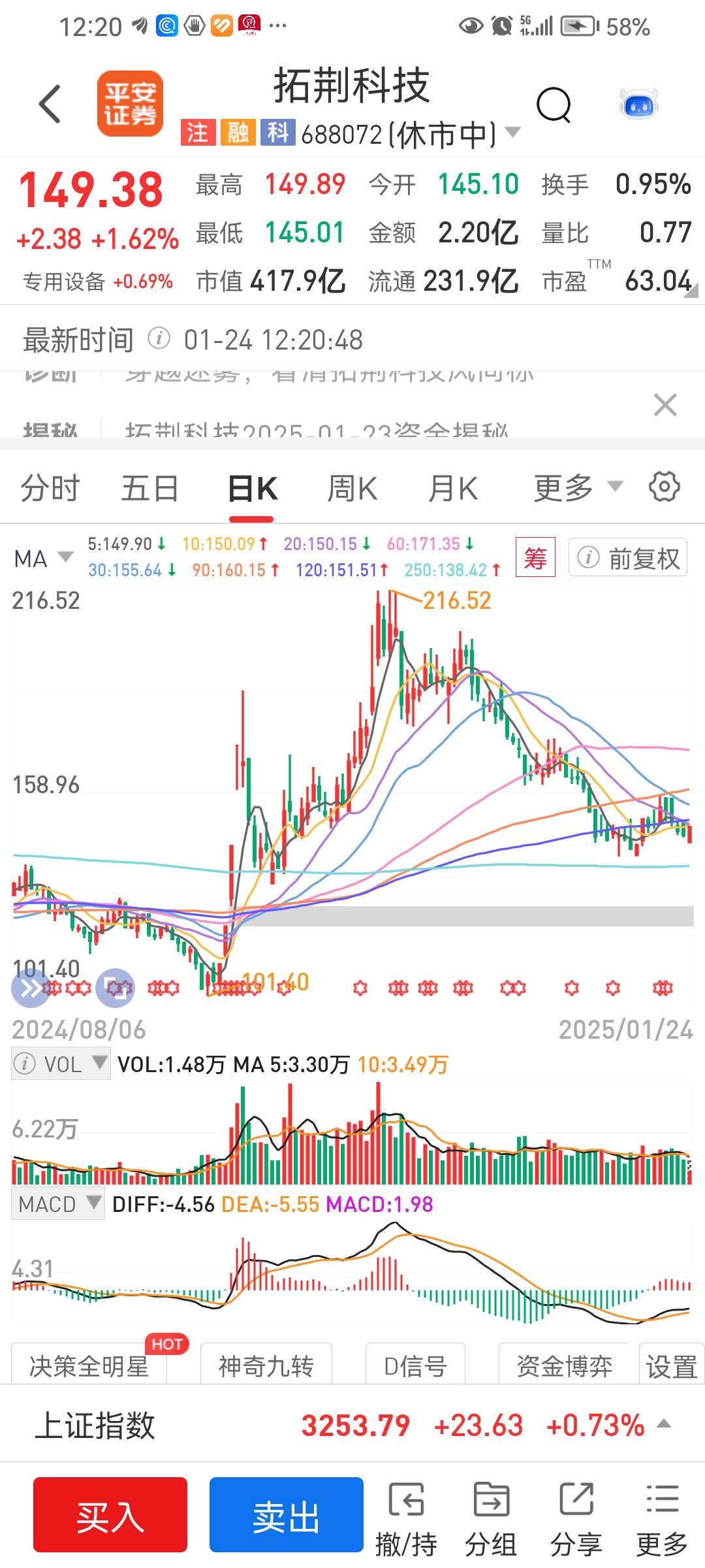 青山遮不住,毕竟东流去。拓荆科技股权激励140.8万解禁股今天上市,该卖的也就卖了,不卖的也就不卖了。至少在下一轮4月份大解禁前还有两个多月的时间,出在春季骚动行情中。小仓位持股,无论近期股价怎么走,我都是一个字:陪。