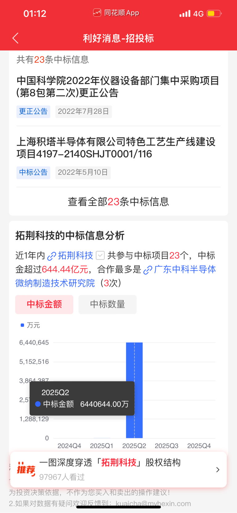 $拓荆科技(SH688072)$ 7亿减持的小员工有什么怕的 看看中标644亿....知道为什么第三期大资金投他了吧 订单实在太多了 要大扩产