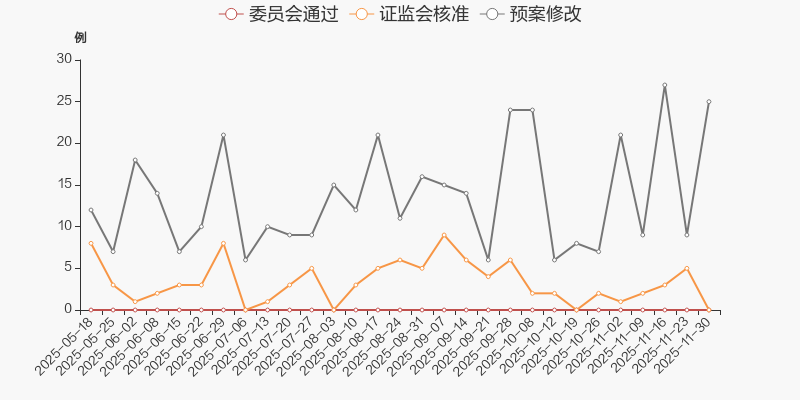 定增项目审核方面,截止11月30日,本周新增0例定增项目获发审委或并购重组委审核通过,0例获证监核准批文,整体审核速度有所放缓。此外,本周25例定增项目预案发生调整。