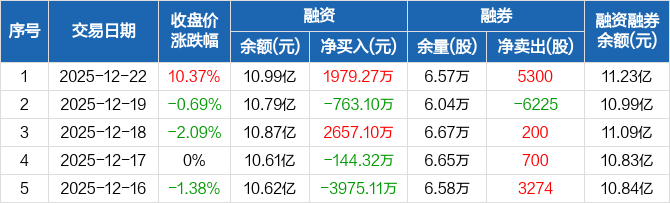 拓荆科技:融资净买入1979.27万元,融资余额10.99亿元(12-22)