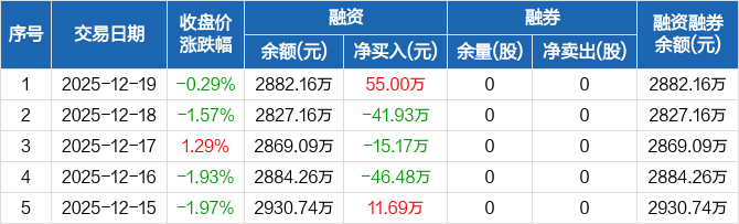 毕得医药:融资净买入55万元,融资余额2882.16万元(12-19)