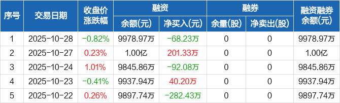 安旭生物:融资净偿还68.23万元,融资余额9978.97万元(10-28)