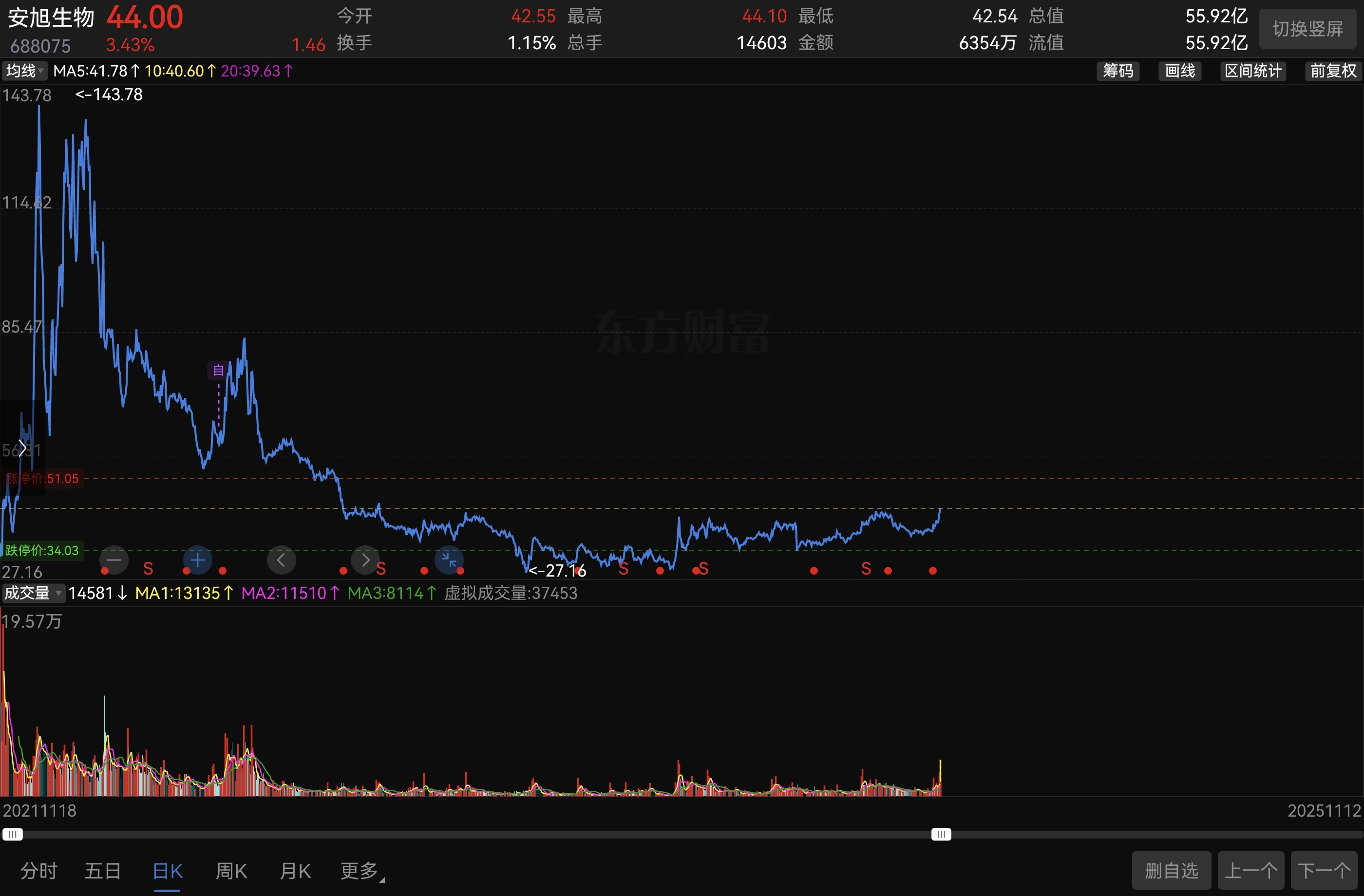 $安旭生物(SH688075)$ 这股在绝对的底部,上面全是套牢盘