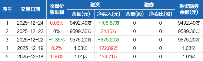 安旭生物:融资净偿还106.87万元,融资余额9492.49万元(12-24)