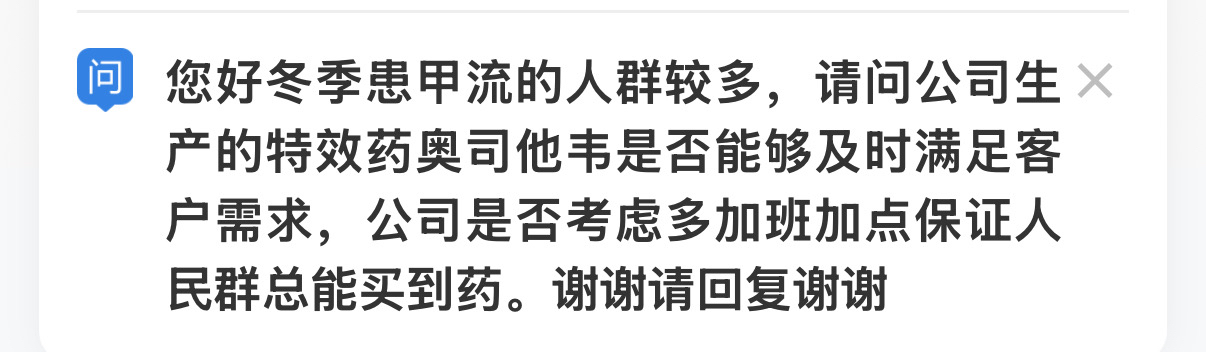 $ST诺泰(SH688076)$ 董秘你也多出来回答问题 奥司他韦忙得很