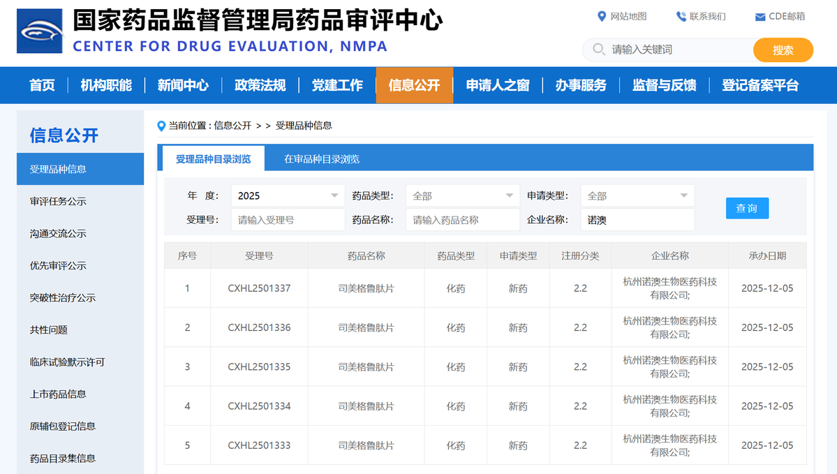 近日,诺泰生物(子公司杭州诺澳生物医药科技有限公司)自主研发的2.2类新药司美格鲁肽片正式获得国家药品监督管理局核准签发的临床试验申请《受理通知书》,涵盖3mg/7mg/14mg/25mg/50mg共5个规格。