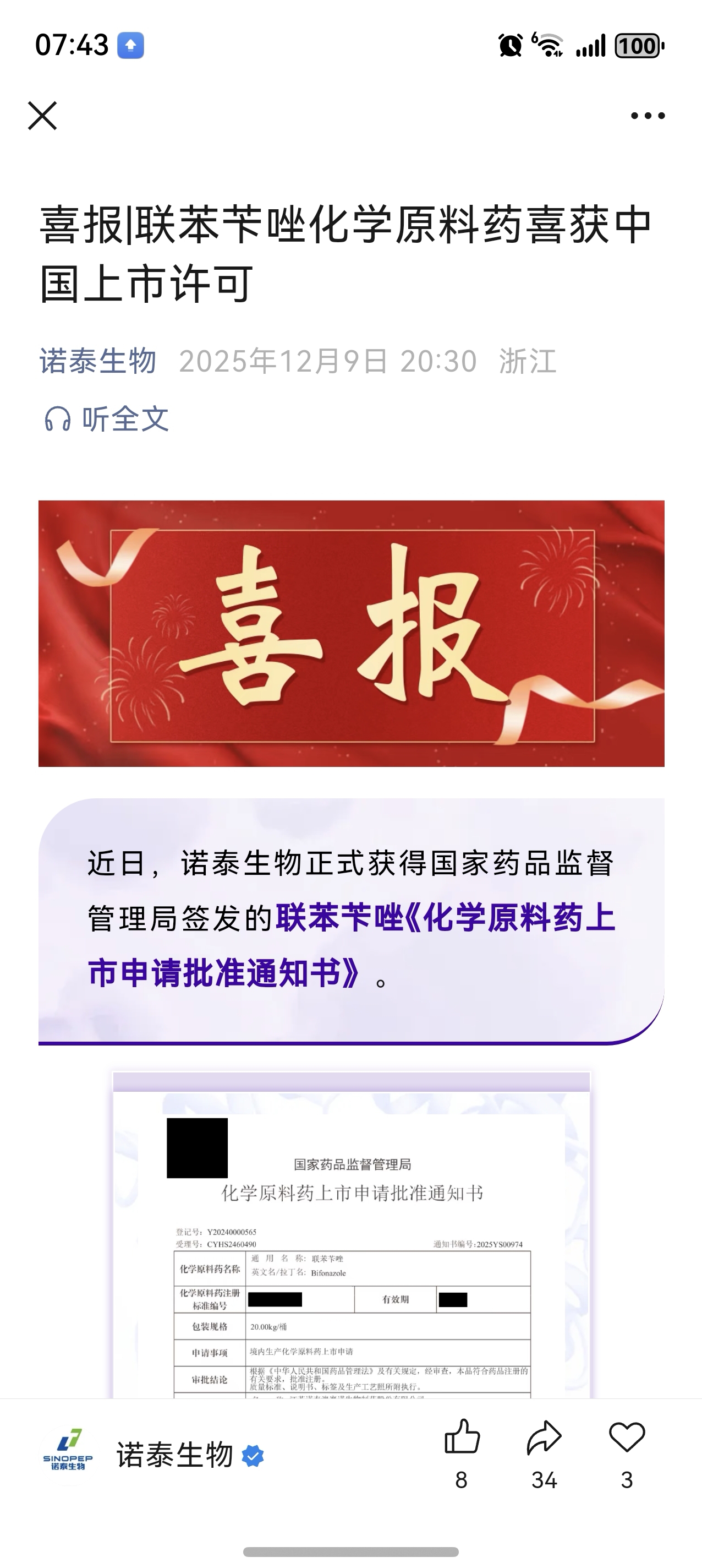 $ST诺泰(SH688076)$ 又一喜报