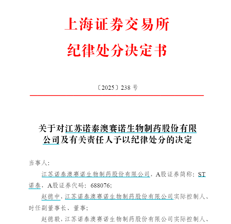 值得注意的是,12月17日晚间的另一条公告显示,上交所还对诺泰生物及上述责任人下发了纪律处分决定书。