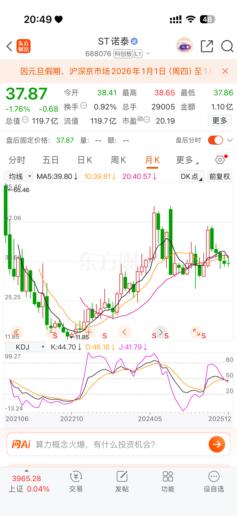$ST诺泰(SH688076)$ 好公司,股票下跌第5个月