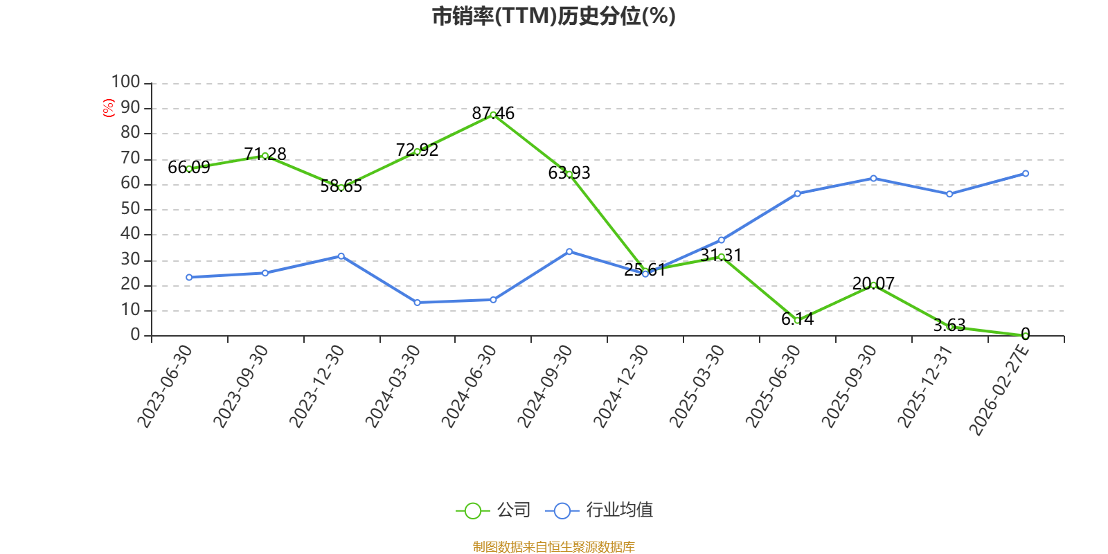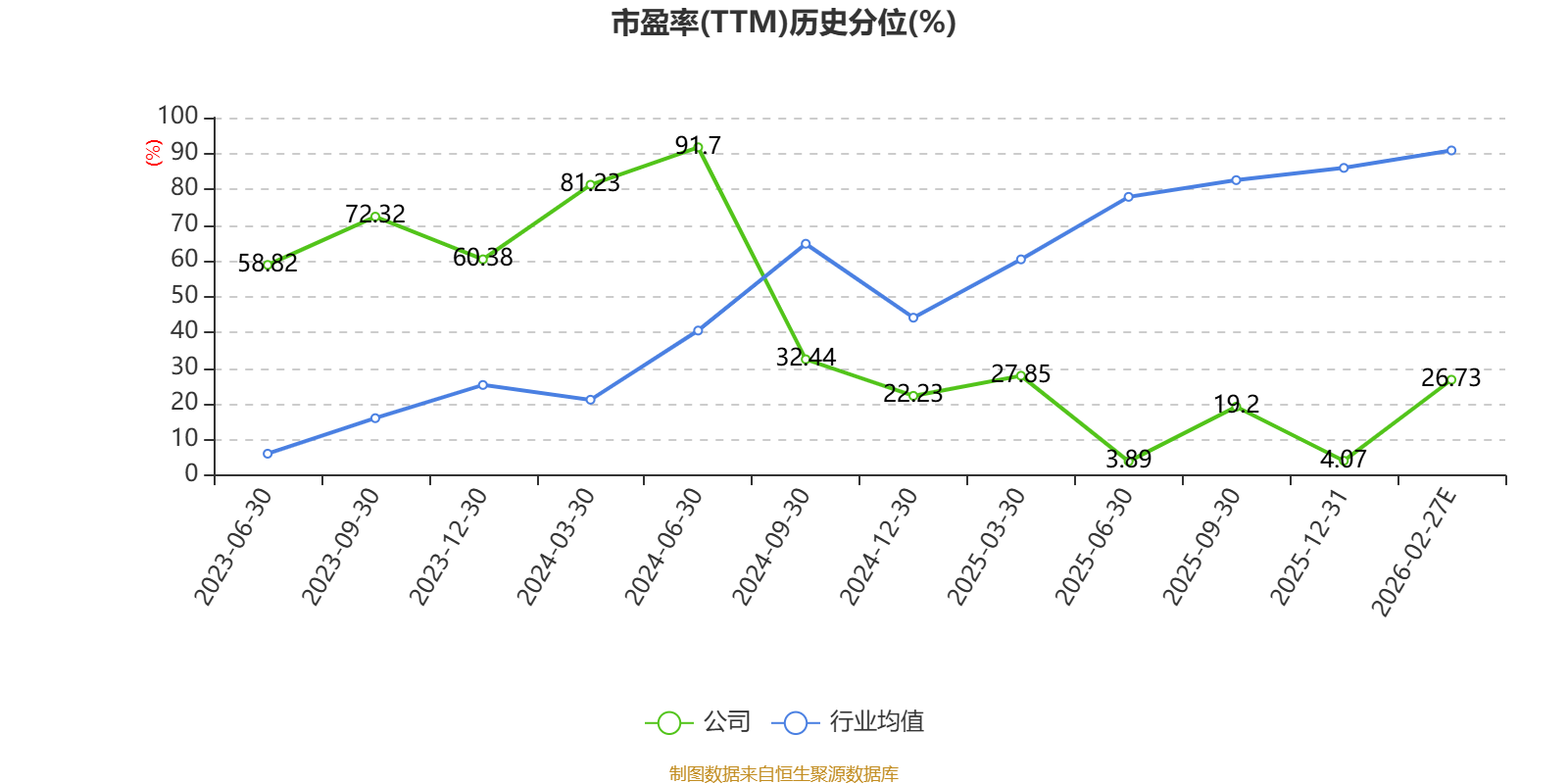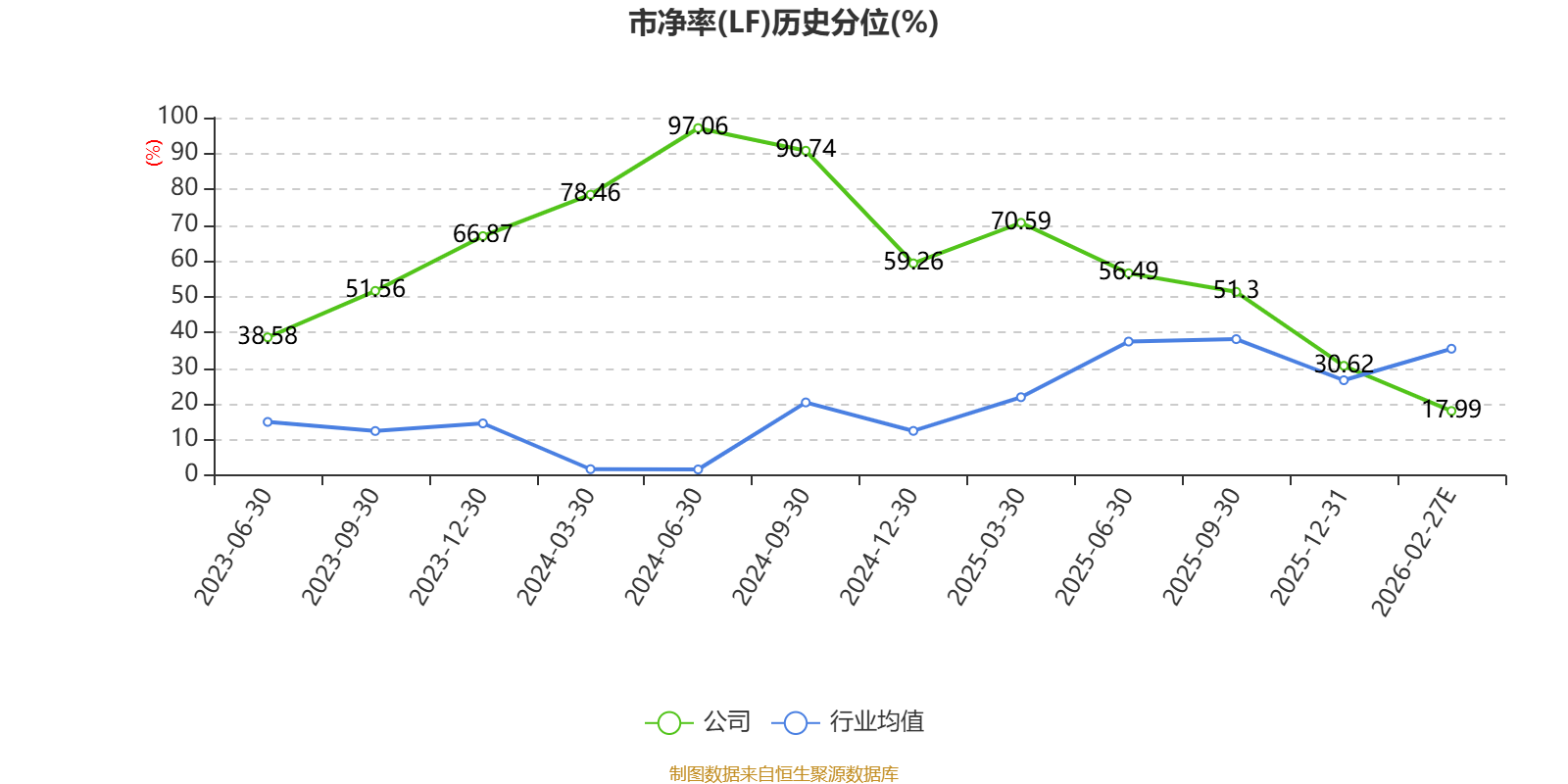 市盈率、市净率为负时,不显示当期分位数,会导致折线图中断。
