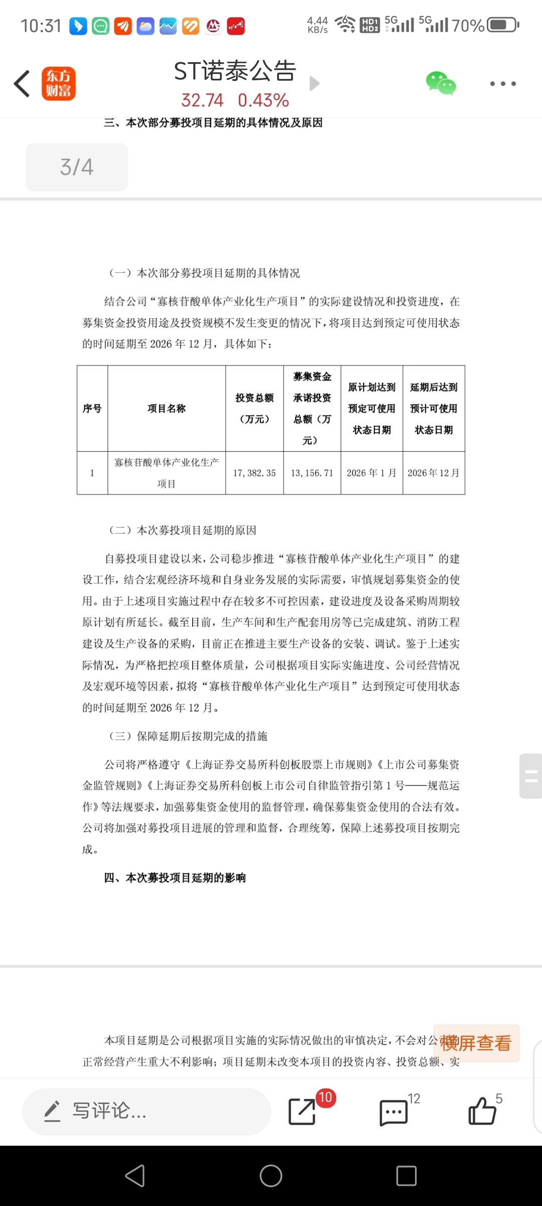 就差2个月就投产了,你说延期到6月,我都认为你是谨慎性报告,你说延期到12月,明显就是想让大家不要把这块产值算到今年的营收里了,现在凭空多出来9个月的产值,单单这一点对应的市值估值至少20个亿吧