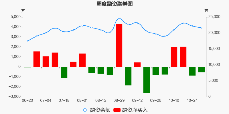大地熊本周(2025/10/27-2025/10/31)累计涨幅达0.87%,截至10月31日最新股价报收34.60元。从增量上来看,10月27日至10月31日融资买入交易规模9877.82万元,融资偿还规模1.04亿元,期内融资净偿还534.45万元。从存量上来看,截止11月2日,大地熊融资融券余额2.17亿元,其中融资余额规模2.17亿元,融券余额规模0元。