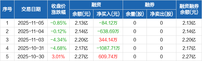 大地熊:融资净偿还84.12万元,融资余额2.13亿元(11-05)