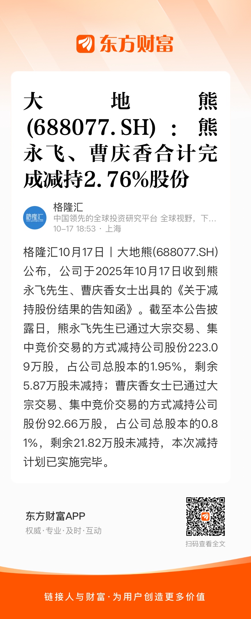 $大地熊(SH688077)$ 随随便便减持一个多亿,整个公司利润才多少?人抵上公司多少年的利润?哎,这种上市公司完全是靠减持套现,公司有没有利润跟他们没关系