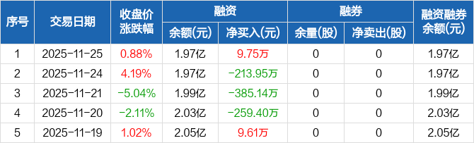 大地熊:融资净买入9.75万元,融资余额1.97亿元(11-25)