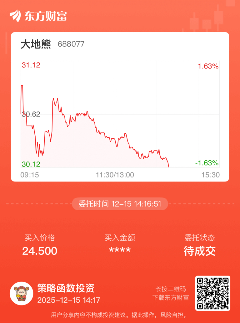 $大地熊(SH688077)$ 挂跌停价买入一点。