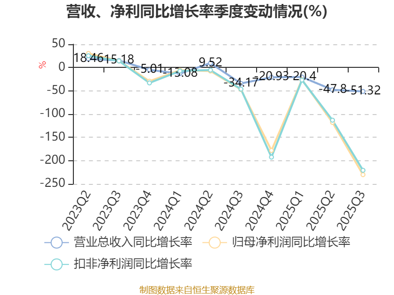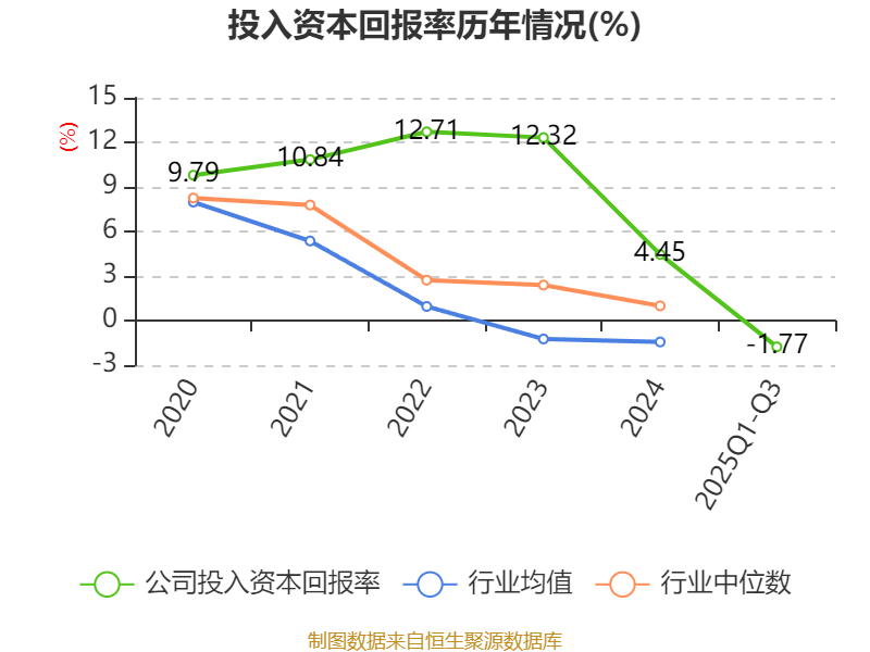 盈利能力方面, 2025年前三季度公司加权平均净资产收益率为-1.75%,同比下降8.44个百分点。公司2025年前三季度投入资本回报率为-1.77%,较上年同期下降8.11个百分点。