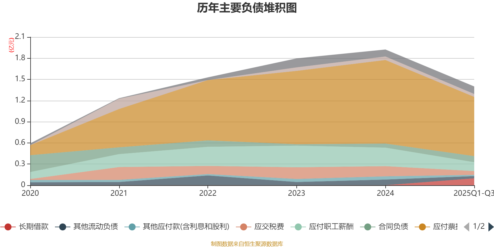 负债重大变化方面,截至2025年三季度末,公司应付票据及应付账款较上年末减少29.11%,占公司总资产比重下降2.88个百分点;应付职工薪酬较上年末减少52.2%,占公司总资产比重下降1.35个百分点;长期借款占公司总资产的1.13%,上年末为0;应交税费较上年末减少63.02%,占公司总资产比重下降0.92个百分点。