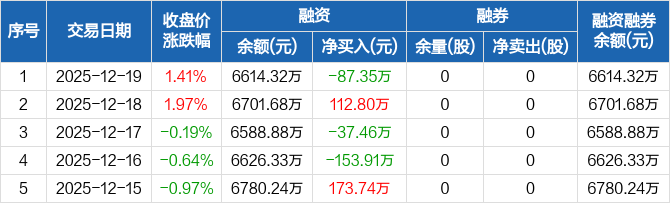 龙软科技:融资净偿还87.35万元,融资余额6614.32万元(12-19)