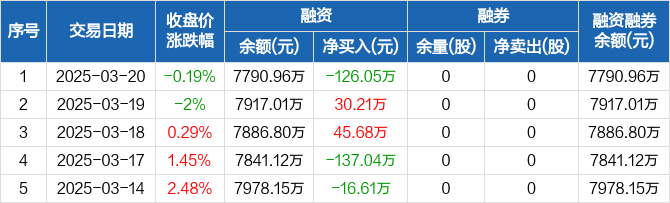 美迪凯:融资净偿还126.05万元,融资余额7790.96万元(03-20)