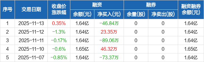 美迪凯:融资净偿还46.84万元,融资余额1.64亿元(11-13)