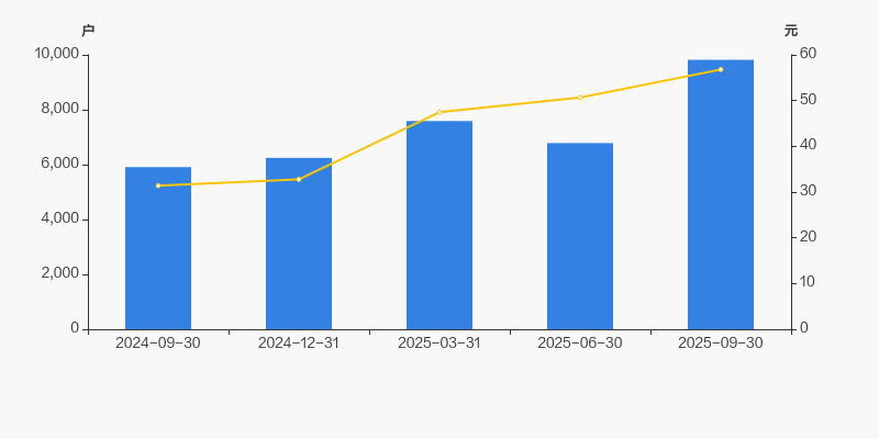 2024年9月30日至今,公司股东户数显著大幅增长,区间涨幅达66.14%。2024年9月30日至2025年9月30日区间股价上涨80.87%。