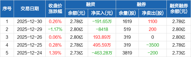 映翰通:融资净偿还191.65万元,融资余额2.78亿元(12-30)