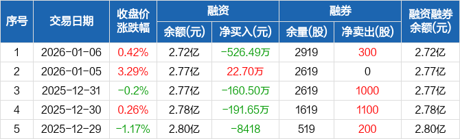 映翰通:融资净偿还526.49万元,融资余额2.72亿元(01-06)
