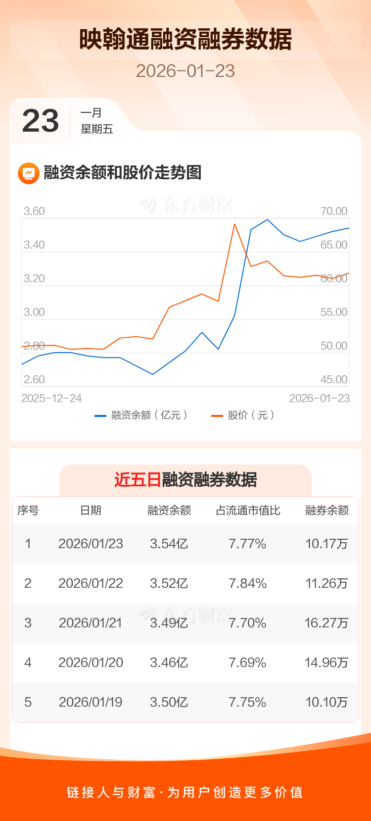 交易所最新数据显示,映翰通于2026年1月23日获融资买入2077.61万元,融资偿还1954.30万元,当日融资净买入123.31万元。目前,该股融资余额3.54亿,占流通市值比例为7.77%。