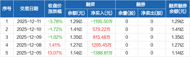 兴图新科:融资净偿还1195.5万元,融资余额1.29亿元(12-11)