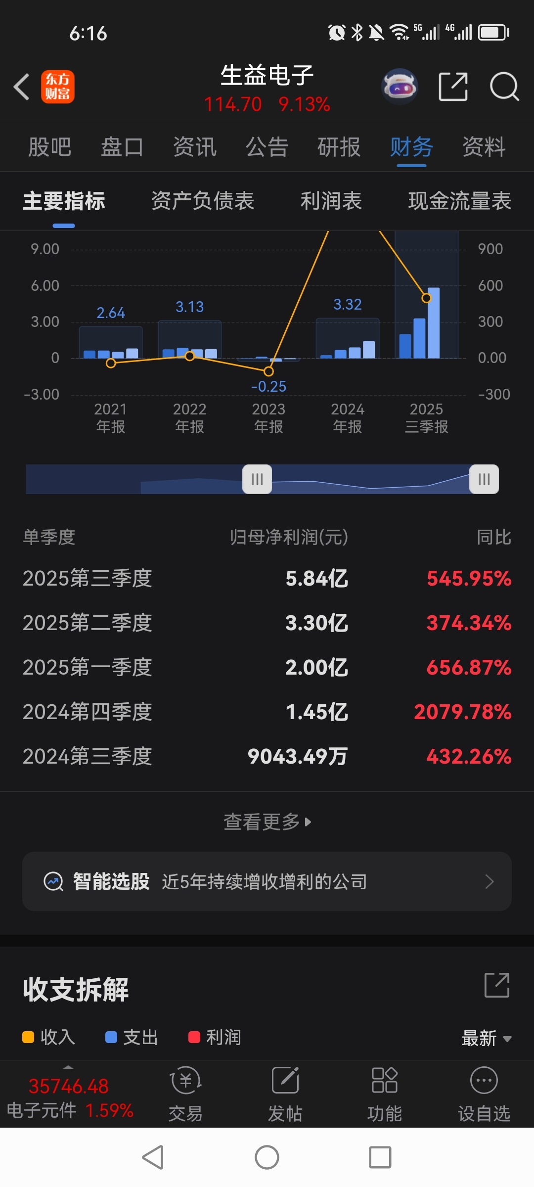 没有生益电子厉害,但生益电子基数低,不过三季度等于前两季度之和。但盛美前两季度是