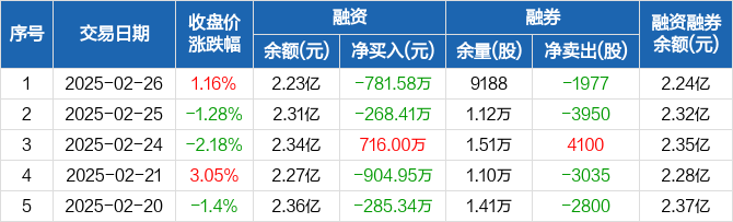 中望软件:融资净偿还781.58万元,融资余额2.23亿元(02-26)
