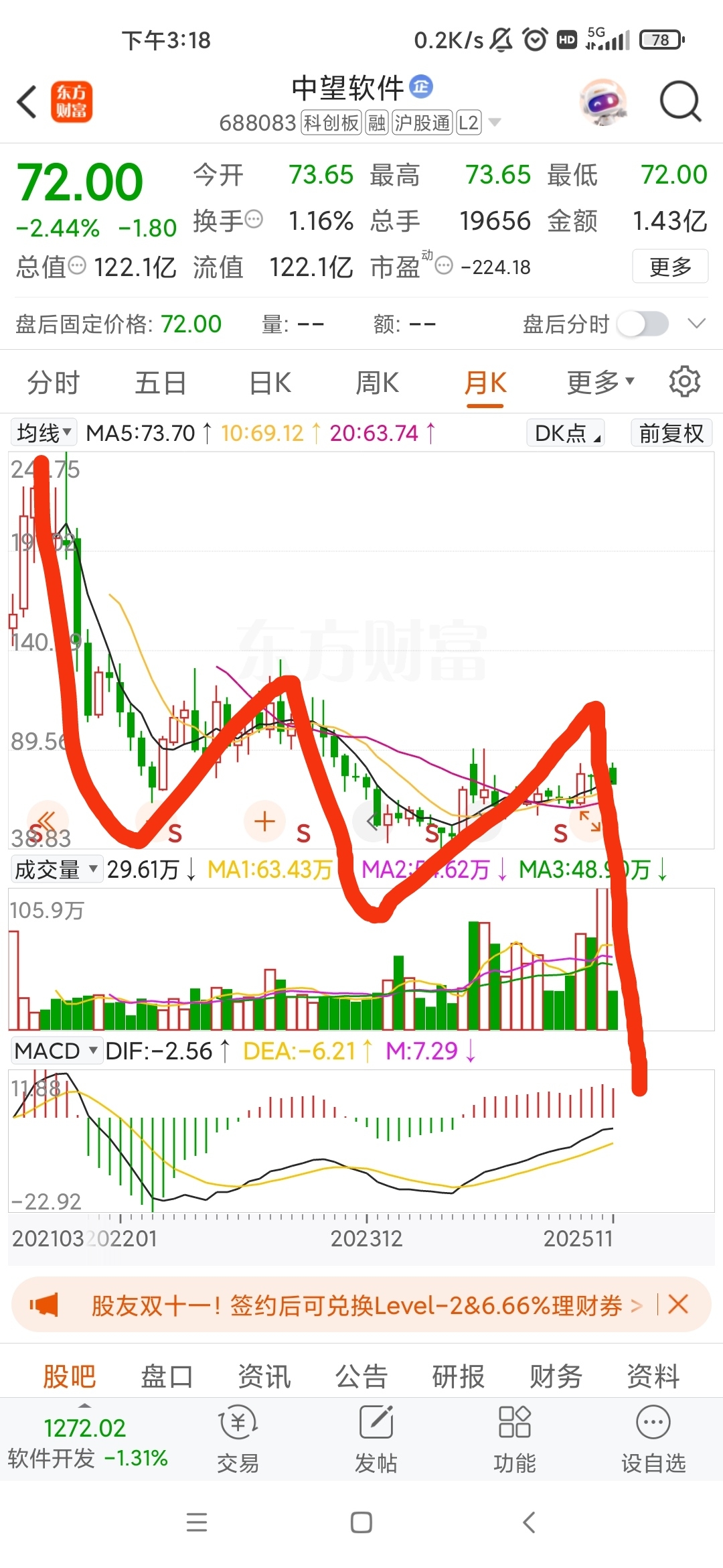 $中望软件(SH688083)$ 各大平台吹工业软件龙头,市占率提升,但成交量持续萎缩,借着美国法案一但败诉这样走的概率有点大,如图