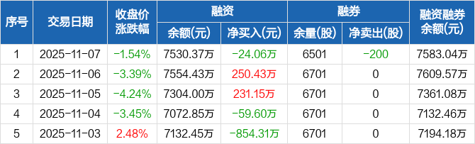 晶品特装:融资净偿还24.06万元,融资余额7530.37万元(11-07)