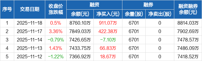 晶品特装:融资净买入911.07万元,融资余额8760.1万元(11-18)