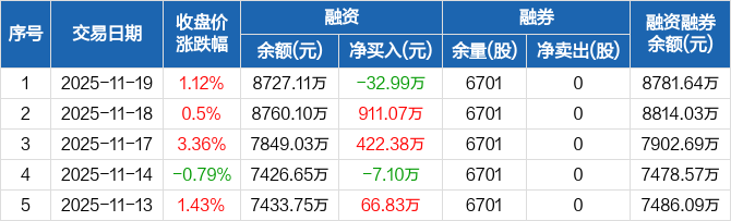 晶品特装:融资净偿还32.99万元,融资余额8727.11万元(11-19)
