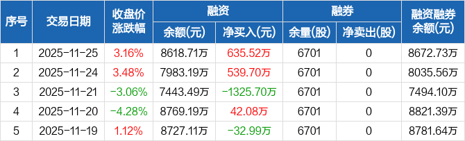 晶品特装:融资净买入635.52万元,融资余额8618.71万元(11-25)