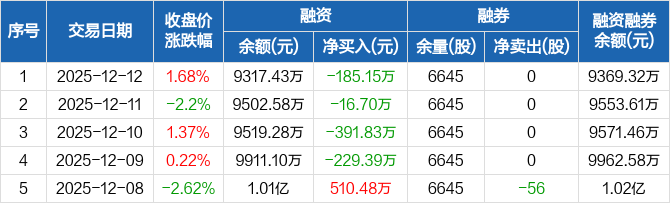 晶品特装:连续4日融资净偿还累计823.07万元(12-12)