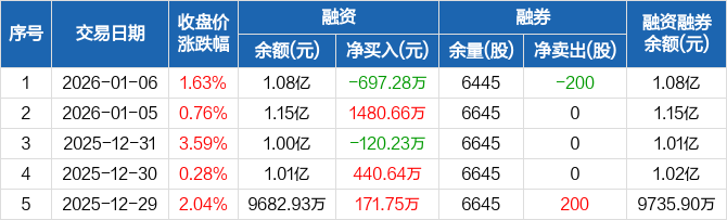 晶品特装:融资净偿还697.28万元,融资余额1.08亿元(01-06)