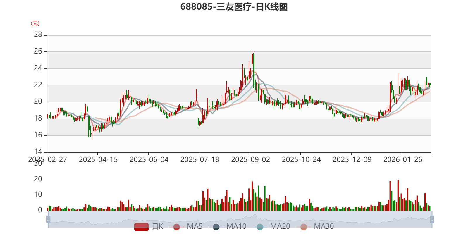 中证智能财讯三友医疗(688085)2月26日晚间披露2025年业绩快报,公司实现营业收入5.43亿元,同比增长19.66%;归母净利润6328.95万元,同比增长451.85%;扣非净利润4966.71万元,上年同期亏损;基本每股收益0.19元,加权平均净资产收益率为3.13%。以2月26日收盘价计算,三友医疗目前市盈率(TTM)约为116.13倍,市净率(LF)约3.54倍,市销率(TTM)约14.35倍。