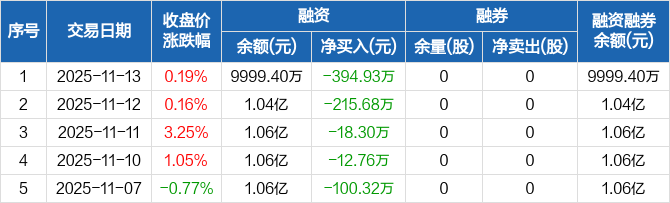 英科再生:融资余额9999.4万元,创近一年新低(11-13)