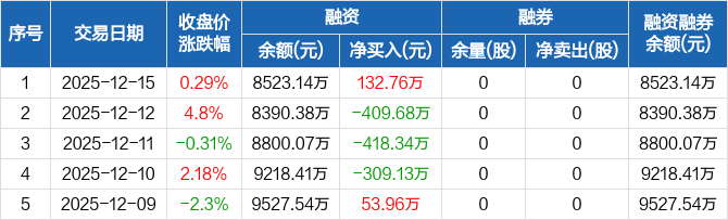 英科再生:融资净买入132.76万元,融资余额8523.14万元(12-15)