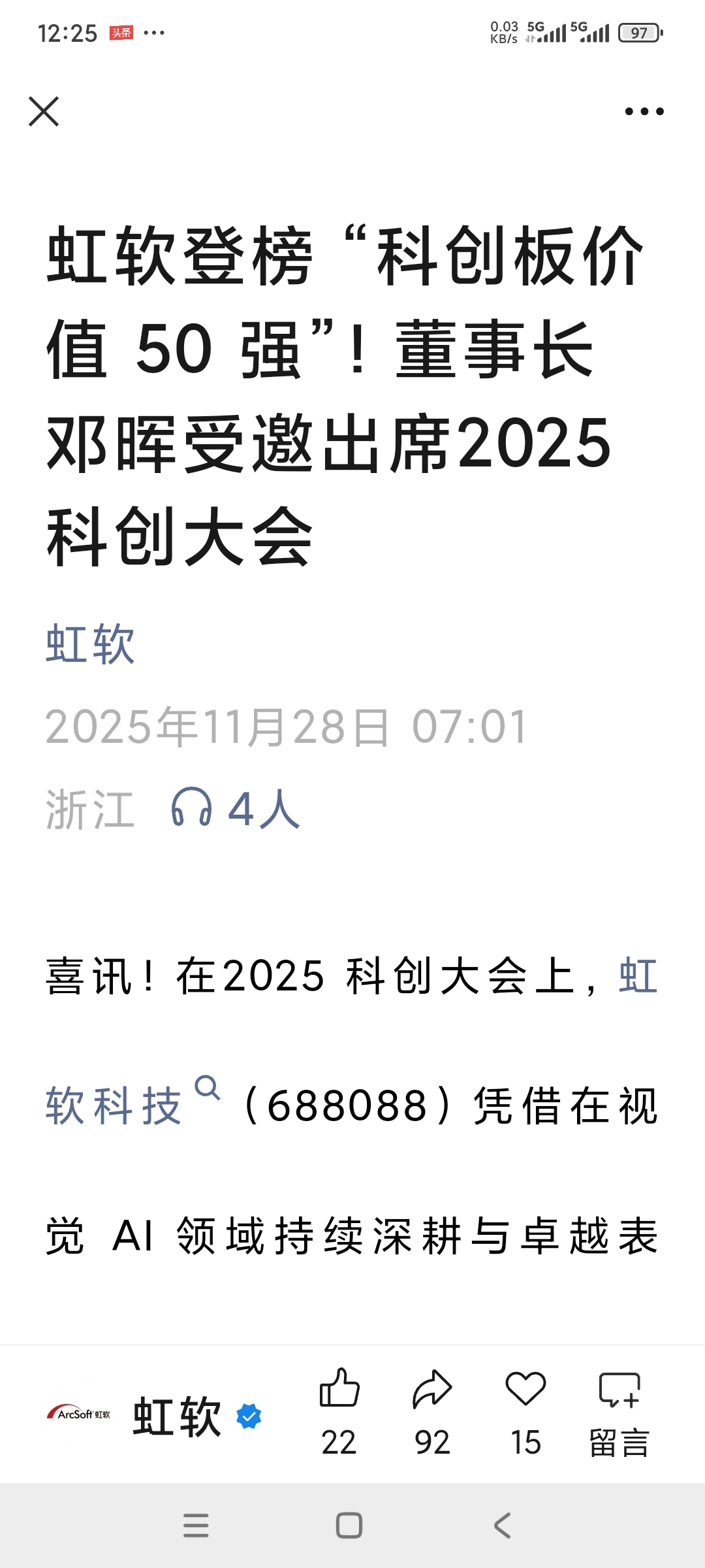 $虹软科技(SH688088)$