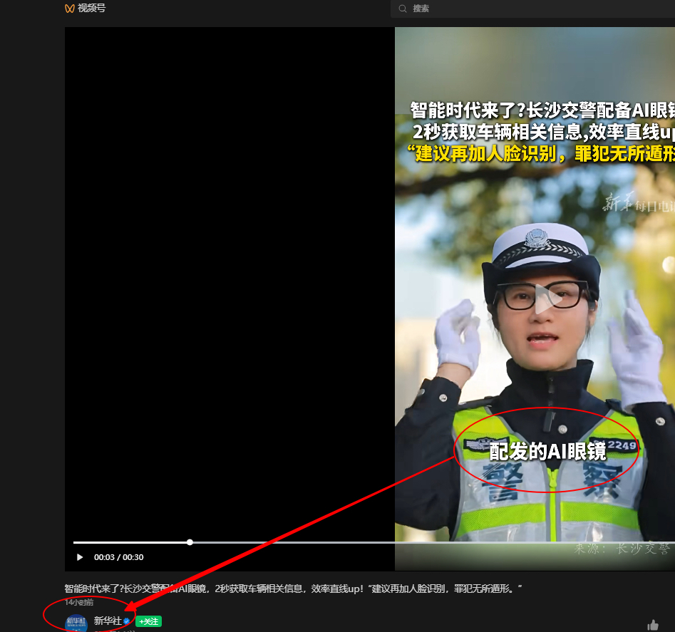 新华社电:长沙交警配置AI眼镜!自己查查是不是和虹软科技有关系