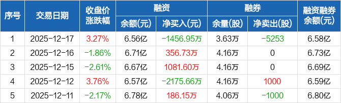 虹软科技:融资净偿还1456.95万元,融资余额6.56亿元(12-17)