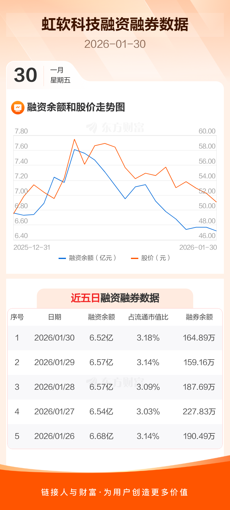 交易所最新数据显示,虹软科技于2026年1月30日获融资买入4491.83万元,融资偿还4978.84万元,当日融资净偿还487.01万元。目前,该股融资余额6.52亿,占流通市值比例为3.18%。